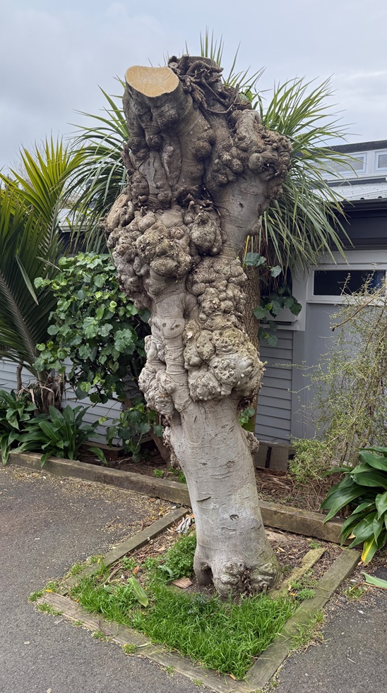 “It is worth noting that pollarding is not a standard practice in Wellington, as it creates ongoing management requirements. Pollarded trees produce numerous epicormic shoots and need more frequent pruning. However, the Ficus species is particularly resilient and can tolerate this intensive pruning. While the current appearance may seem severe, the work has now been completed correctly.