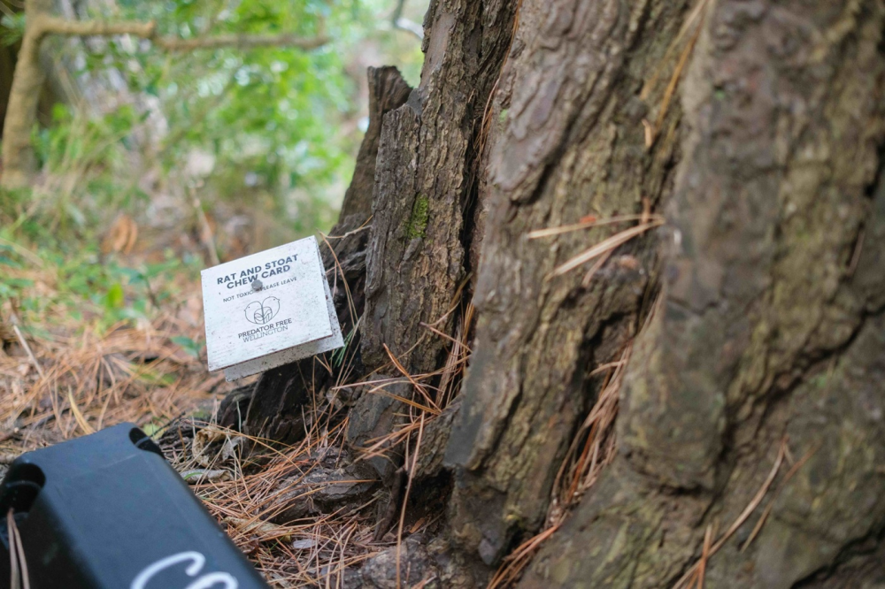 Predator Free Wellington is eliminating introduced predators through a mix of monitoring cameras, chew cards, poison devices, and community monitoring.