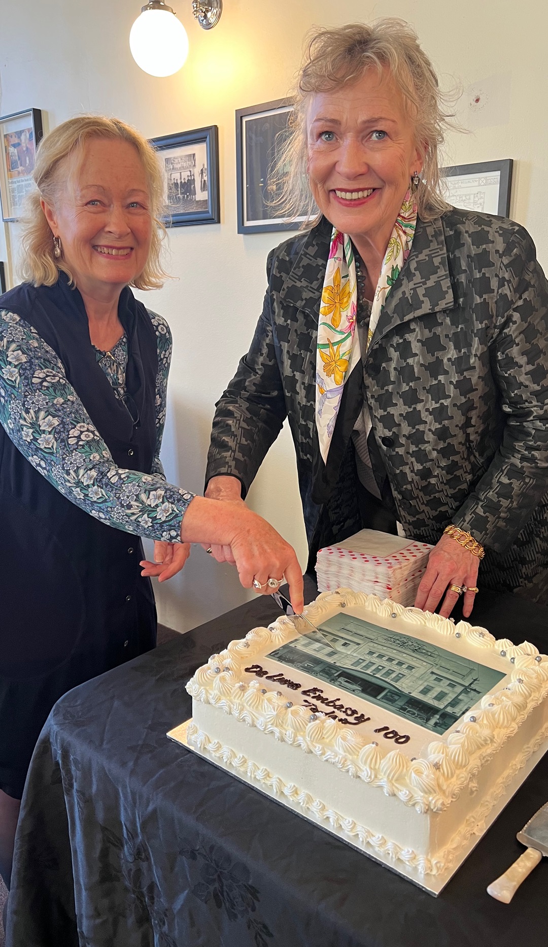 Victoria Historical Society unveiled its new information board on the side of the Embassy. This was marked by an event for supporters and donors, featuring the cutting of a cake with Historical Society convenor Joanna Newman (left) and Wellington city councillor Nicola Young.